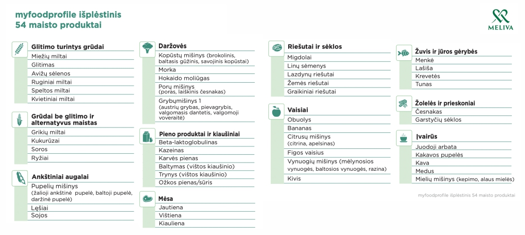Svarbu: tyrimas nėra skirtas alergijoms diagnozuoti. Tai papildoma informacija, padedanti gerinti mitybos balansą ir savijautą.