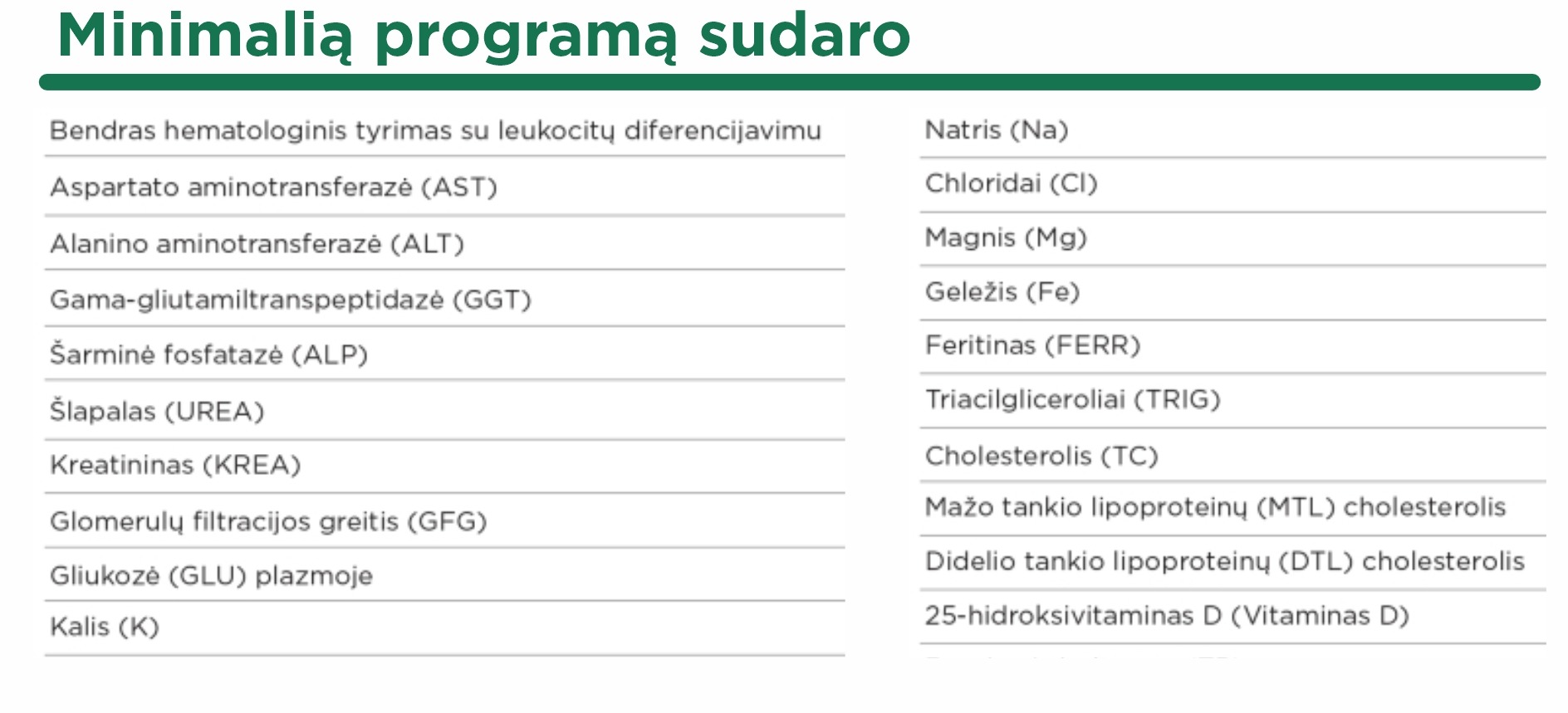 Siūlomos trys programos – minimali, vidutinė ir maksimali, apimančios svarbiausius organizmo rodiklius.
