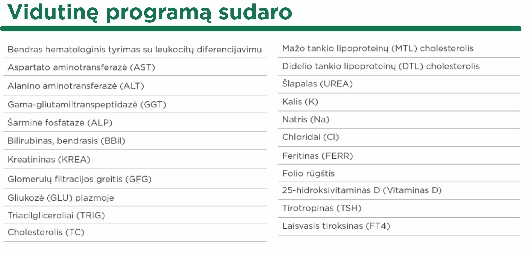 Programa leidžia nustatyti, kokias funkcijas reikia atstatyti, kad pagerėtų energijos lygis ir savijauta. Tyrimuose vertinami rodikliai, tokie kaip feritinas ir vitaminas D.