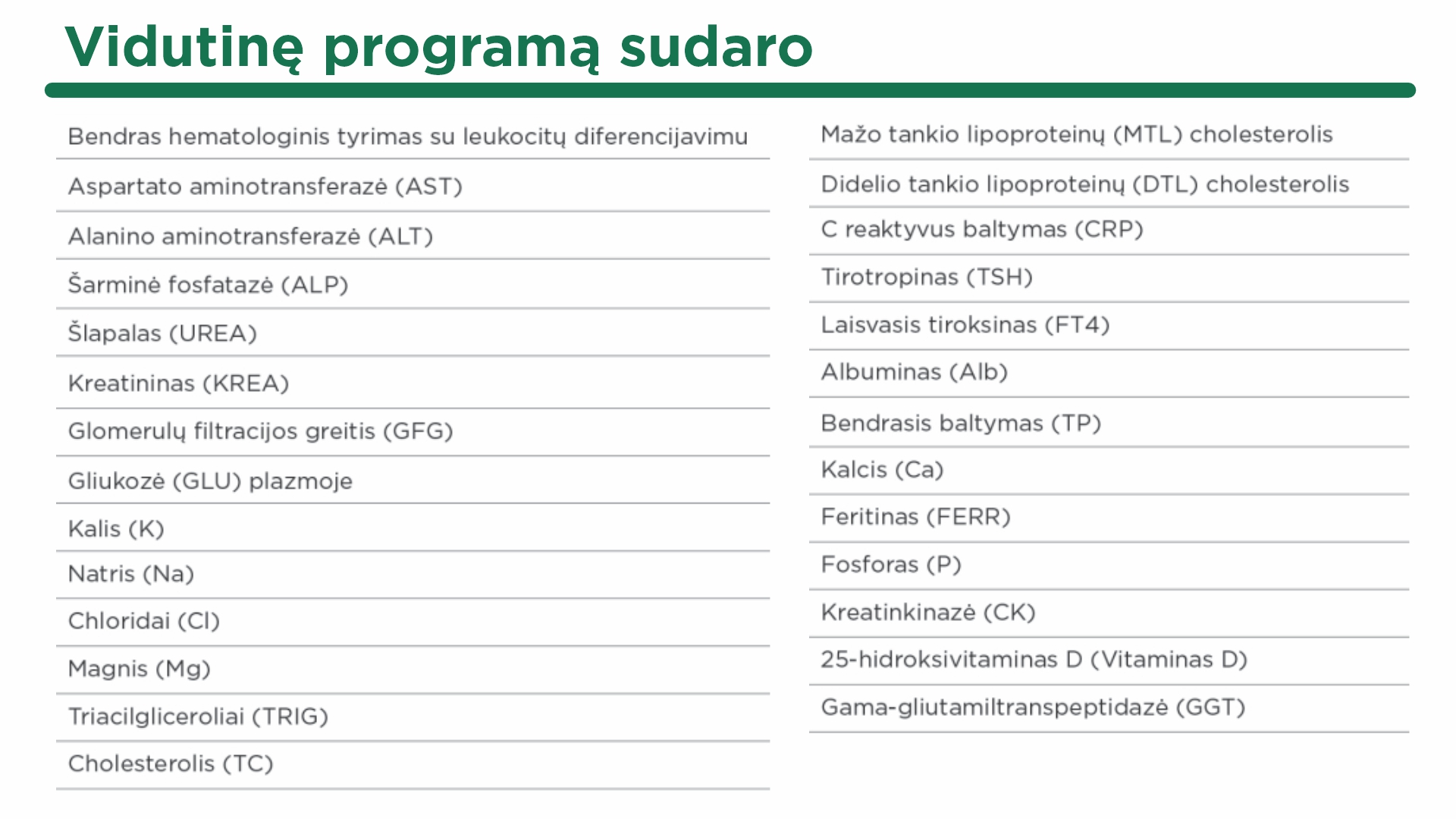 Sportuojančiųjų tyrimų programa leidžia įvertinti širdies ir kraujagyslių sistemos būklę, mikroelementų ir vitaminų kiekį.