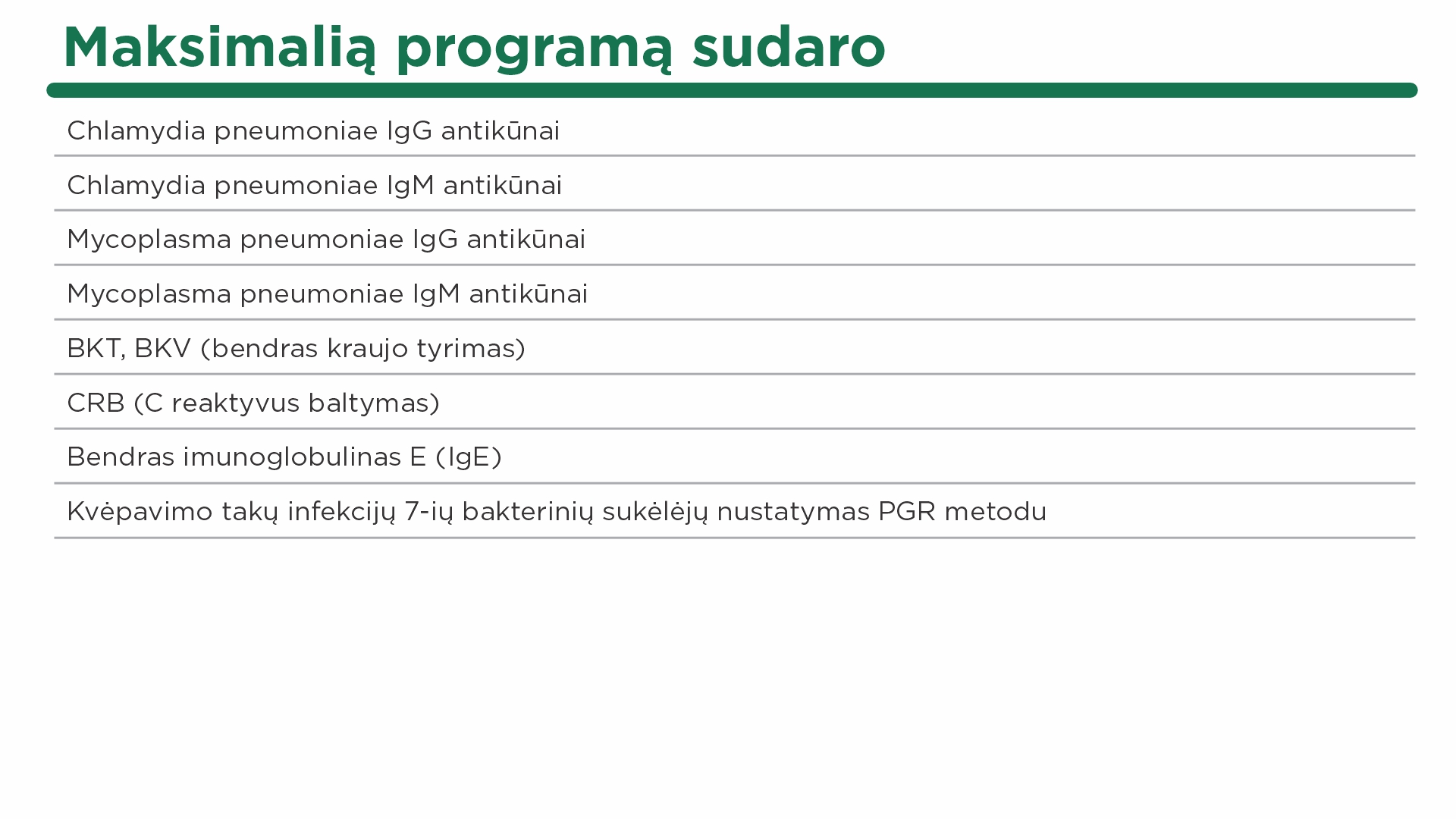 Maksimali programa leidžia atlikti visapusišką diagnostiką, nustatyti tikslią kosulio priežastį ir sudaryti individualų gydymo planą.
